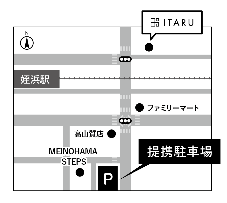 MEINOHAMA STEPSの東側に提携駐車場がございます。(店舗より徒歩約4分)